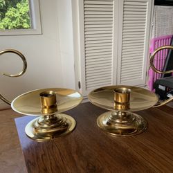 Vintage Set of Baldwin Solid Brass Large Chamber Candlestick Holder with Scroll Handle$30Vista, CA