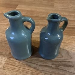 VINTAGE SEA GREEN POTTERY PITCHER STYLE VASE Set Of Two Handmade $15Mission Viejo, CA