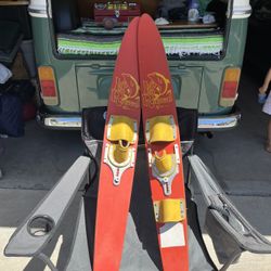 Vintage Kids Water Skis - Lil Rascal by Lake Region, Colorful Nautical Wall Decor, Lake House Decor, Beach Themed Decor $400Dana Point, CA