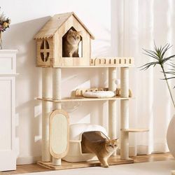 58" Tall&Wide Solid Wood Cat Tree Tower for Indoor Cats, Modern Cat Tree Open-Style Cat Villa Condo with Scratching Posts & Board, Cat Beds, Multi-Lev$95Temecula, CA