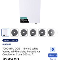 HISENSE 8000-BTU DOE (115-Volt) White Vented Wi-Fi enabled Portable Air Conditioner Cools 350-so ft$350Riverside County, CA