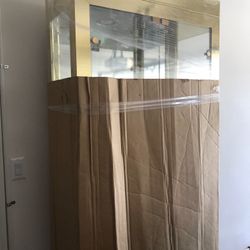 Contempary Glass and Gold Brass Armorie . 5 Shelves And Lights Inside. Perfect Condition. Wraped For Moving.$200Oceanside, CA