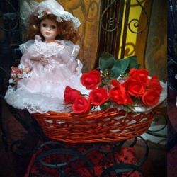 Wicker Rattan Carriage (Stroller, Pram) with Porcelain Doll $75San Diego, CA