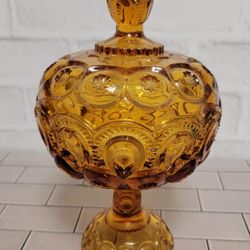 Vintage L.E. Smith Amber Glass Covered Dish Moon and Stars Pedestal Candy Dish$25Oceanside, CA