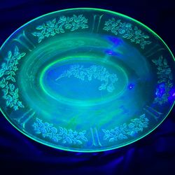 VTG Federal Glass Sharon Cabbage Rose Green Uranium Glass Oval Platter$30Mission Viejo, CA