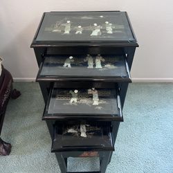 Oriental Furniture Black Lacquer Nesting 4 Tables Carved Geisha Ladies$300Temecula, CA