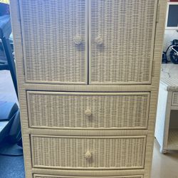 White Wicker Dresser/Armoire And Matching Nightstand With Drawer.$400San Diego, CA