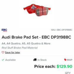 EBC red stuff Brake Pads For Audi A4$70San Juan Capistrano, CA