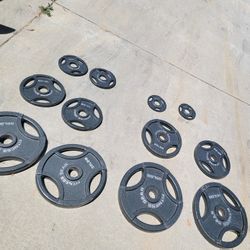 Lots Of Olympic Weights Available. 45s, 35s, 25s, 10s, 5s. $1 a poundVery Nice Dumbbells 40 And 30 Lb And Very Strong 7 Ft Olympic Barbell $1Hemet, CA