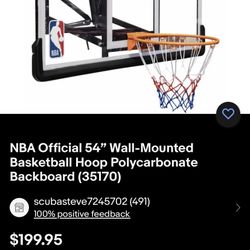 NBA Official 54" Wall-Mounted Basketball Hoop Polycarbonate Backboard$100Escondido, CA