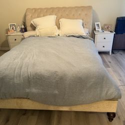 Restoration Hardware King Belgian Linen in Sand Tufted Bed with box spring$800San Clemente, CA
