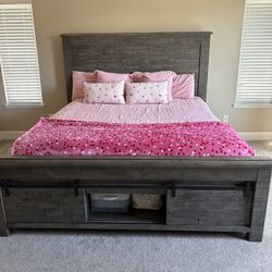 King bedroom set. Includes frame, 2 nightstands and a dresser/mirror combo. $1,300Winchester, CA