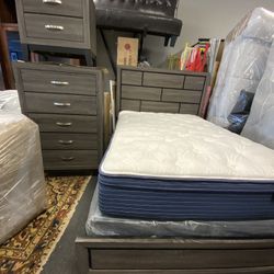 Complete full /Queen Bedroom Set With Name Brand Mattress Set Modern Attractive Bed And Chest 5 Drawer And nightstand 💥! Ready Turnkey Great Boys Set$1,250Menifee, CA