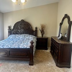 Wooden 4pc Bedroom Set (Queen Bed, Dresser , Mirror And Nightstand) Chest Sold Separately $599Hemet, CA