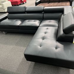 New Sectional W Adjustable Headrests. Black Leather . 106” X 77”. Free Delivery !$1,000San Marcos, CA
