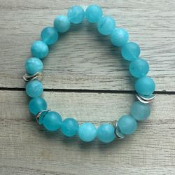 Aqua Blue Chalcedony Beaded Bracelet – 7.5”$13Murrieta, CA