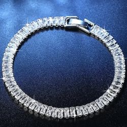 925 Sterling Silver Bracelet With Graduated Cubic Zircons Beautiful $60Lake Elsinore, CA