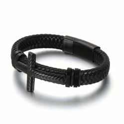 Men Allow Black Cross Leather Bracelet $24Ladera Ranch, CA