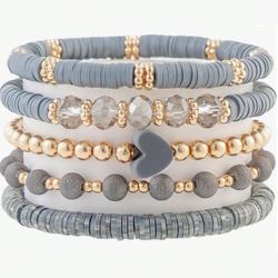 5-Piece Elegant Gray Ceramic Heart Bead Multi-Layer Bracelet Set 💎$15Carlsbad, CA
