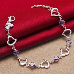 Elegant Silver-Plated Heart Bracelet with Purple AAA Cubic Zirconia 💎$15Carlsbad, CA