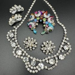Vintage B.S.K. Rhinestone Colorful Brooches And Clear Rhinestone Necklace Set$48Corona, CA