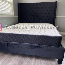 Queen Size Black Wingback Tufted Bed W Orthopedic Mattress $479Lake Elsinore, CA