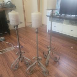Set of 3 Gray Metal Wrought Iron Style Scroll Pillar Candle Holders$10Oceanside, CA