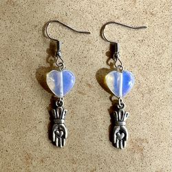 🤍 Beautiful, milky, iridescent heart bead earrings, with silver tone hand with heart charms$8Carlsbad, CA