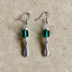🟩 Beautiful green cube and silver tone charm earrings$8Carlsbad, CA