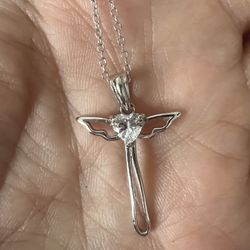 Angel wings Heart 🤍 CZ cross necklace$69Temecula, CA