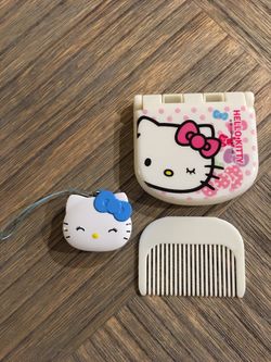 Hello Kitty chin and mirror compact with bonus Hello Kitty hanging charm A blue charm. Ohh so cute Hello Kitty with pink bow Removable mirror to h$8Temecula, CA