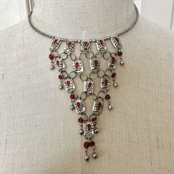 Silver Tone And Red Adjustable Choker Necklace $20Encinitas, CA