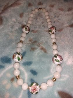 14kt white Jade beads& enamel flower beads chocker$250San Marcos, CA