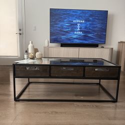 Modern Industrial Glass Top Coffee Table with Storage Drawers$100San Diego, CA