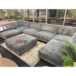 Gray corduroy 7 Pc modular sectional set adjustable back support