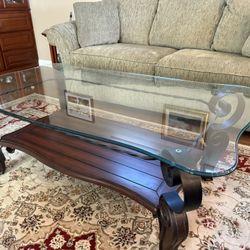 Cherry Wood & Glass Top Coffee Table + 2 Matching End Tables - Elegant Set!$150Murrieta, CA
