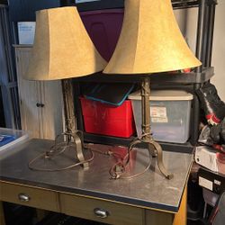 This is a pair of vintage-style metal table lamps with shades. $70Oceanside, CA