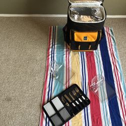 Picnic Cooler pack on wheels + Travelling Cutting Board set + 2 plexi wine glasses and cut out clear reusable Dishes $40San Diego, CA