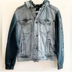 Hollister Women’s Black Denim Jacket w/ Black Sweatshirt Hood & Sleeves size XS$22Wildomar, CA