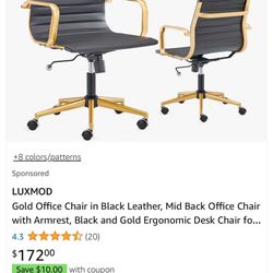 Wheeling Black Leatherette Chairs With Brass Metal Arms/legs$100Solana Beach, CA