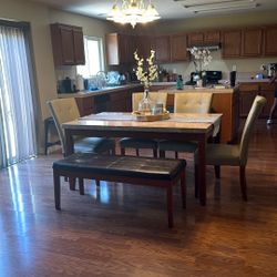 Solid Wood Marble Top Dining Table Set With 3 Chairs And Bench 48x36x30 "$289Lake Elsinore, CA