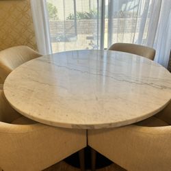52 Inch Marble Top Dining Table With Cream Fabric Armchairs$1,100Carlsbad, CA