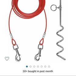 20ft Dog Tie Out Cable for Dogs, 16" Chrome Plated Anti Rust Stake, Great for Camping or The Garden, Suitable for Harness, Leash & Chain Attachments$10Escondido, CA