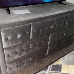 Grey Velvet Dresser W/ Crystal Acrylic Knobs Brand New In Box $650Temecula, CA