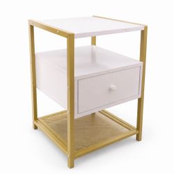 New RAAMZO 3-Tier White & Gold Nightstand Side End Table with Lower Mesh Shelf & Drawer$45Menifee, CA