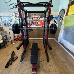 Vesta Fitness Smith Machine 2001 w/Bench Attachment | 230lb Bumpers Weights | 7ft Olympic Bar | Fitness | Gym Equipment | FREE DELIVERY 🚚 $1,499Menifee, CA
