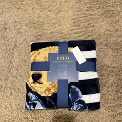 NWT Polo Ralph Lauren Navy Blue BEAR Fleece Blanket Pony Throw$89Carlsbad, CA