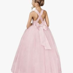 Girls Ball Gown Satin Bodice Tulle Princess Pageant Flower Girl Dress Cross Strap Junior Bridesmaid Dresses with Bow$40Lake Elsinore, CA