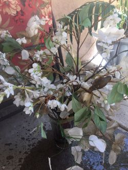 Red & white Silk flowers arrangement in vase$5Temecula, CA