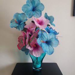 Gorgeous Italian Glass Vase With Silk Flowers Arrangement $30Lake Elsinore, CA
